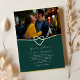 Ajoutez une touche personnelle et luxueuse à votre papeterie mariage avec cette invitation vert émeraude avec un accent de corde coeur en feuille d'or et une photo personnalisée. Une calligraphie élégante et un agencement sophistiqué font de cette invitation une invitation parfaite pour des fêtes romantiques et élégantes. Idéal pour les couples qui souhaitent allier chaleur personnelle et élégance moderne. Vous avez besoin d'éléments correspondants ou d'aide personnalisée ? Courriel bpkolman@gmail.com.