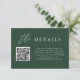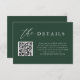 Emerald Green Elegant Calligraphy QR Code Wedding Details Cards