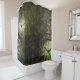 Umgestalten Sie Ihr Bad in ein Dampfbad mit diesem Duschvorhang mit einer alten Uhr in einer rustikalen smaragdgrünen Kulisse. Es ist ein Nicken an die Eleganz einer vergangenen Zeit. Bestelle noch heute!