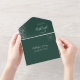 Die links Kulisse dieses eleganten und modernen All-in-One-Hochzeitseinladens und UAWG besticht durch einen silbernen Imitat-Glitzer. Der anpassbare Text kombiniert silbergraue, weißliche Handschrift, Kupferplatte und kursiv Schriftart auf einem smaragdgrünen Hintergrund. Die Rücksendeadresse erscheint auf der Außentafel und auf der Rückseite der abnehmbaren RSVP-Karte in silbergrauem Text auf solidem Grün. Ein QR-Code ist auf der RSVP-Karte für Gäste enthalten, die online antworten möchten.