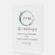 Welcome your wedding event guests to the reception area with this clear, acrylic sign that features an emerald green color, simple botanical wreath design along with the bride and groom's monogram, as well as their full names and wedding date printed in black, stylized lettering. Customize your acrylic sign by editing and replacing monogram initials, names, and wedding date. Edit further if desired. Select your sign style.