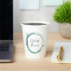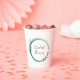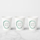 Ajoutez de l'élégance à votre événement wedding shower avec ces tasses en papier blanc qui présentent une couleur vert émeraude tendance, une conception simple de la couronne avec les noms de futurs mariés et mariés imprimés en caractères gris et stylisés sur un côté de la tasse. Modifiez et remplacez les initiales par les vôtres.
