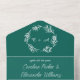 Smaragdgrün, elegant, rustikal, modern gefaltete Ehe, Hochzeit alles in einer Einladung. Waldland, lässig, bezaubernder Wald. Das dreifache, budgetäre Set. Sie können es mit Ihren eigenen Daten personalisiert.