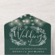 Alles in einer Hochzeitseinladung mit hübschen Saitenlichtern, handgezeichnet Blumengarten und schicker Typografie auf smaragdgrünem Hintergrund. Die Einladung enthält eine perforierte RSVP-Karte, die für Sie individuell adressiert oder links als leere Karte für die Handschrift der Adressdaten Ihres Gastes verwendet werden kann. Entwickelt von Thisisnotme©