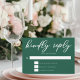 Diese smaragdgrüne Hochzeitskarte bietet klassische weiße Schriften für ein Paar, das in einem Wald oder anderen Naturstätten heiraten möchte. Feiern Sie Ihre Liebe mit dieser ruhigen Farbe und stimmen Sie mit unserer minimalistischen Typografie-Kollektion ab. Bitte antworten Sie auf die Karten.