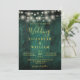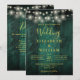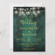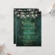 Emerald Green Wood String Lights QR Code Wedding Einladung