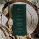Diese smaragdgrüne, koordinierte Karte für das Hochzeitsessen ist perfekt für eine Hochzeit. Das elegante und dennoch rustikale Design besticht durch ein stimmungsvolles dunkles Grün und ein modernes böhmisches Waldambiente. Koordiniert mit der Emerald Greenery Collection von Fresh & Yummy Paperie. Diese Speisekarte kann für Hochzeitsfeiern, Proben oder jede Veranstaltung verwendet werden.