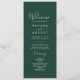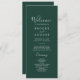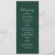 Dieses smaragdgrüne koordinierte Hochzeitsprogramm ist perfekt für eine Hochzeit. Das elegante und dennoch rustikale Design besticht durch ein stimmungsvolles dunkles Grün und ein modernes böhmisches Waldambiente. Koordiniert mit der Emerald Greenery Collection von Fresh & Yummy Paperie. Geben Sie die Namen des Paares, das Datum und den Ort der Hochzeit, Dankeschön-Nachricht, Dienstorden, Hochzeitsfeier und ein optionales "in Loving Memory"-Denkmal ein.