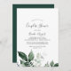 Dieses smaragdgrüne Paar Dusche lädt zu einem boho Polterabend ein. Das elegante und dennoch rustikale Design besticht durch stimmungsvolle, dunkelgrüne Blätter und Eukalyptus mit einem modernen böhmischen Waldgefühl.