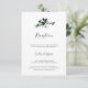 Cette carte d'encarts de réception de mariage émeraude est parfaite pour un mariage boho. Le design élégant et rustique présente des feuilles d'aquarelle vert foncé moody et des eucalyptus aux tons bohèmes modernes. Personnalisez cette carte détaillée de boîtier avec vos informations de réception et incluez également votre adresse de site mariage !
