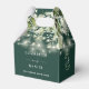 Elegante smaragdgrüne Blumenstrauß-Gastgeschenk Hochzeit-Box personalisiert mit Ihren Namen, Monogramm-Initialen, Hochzeitstermin und besondere Nachricht. Entwickelt von Thisisnotme©