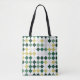 Dieses Bild zeigt ein geometrisches Muster wechselnder Diamantformen in verschiedenen Farbtönen Grün, Gold und Weiß. Die Diamanten sind in einem Gitter angeordnet, wodurch ein visuell dynamischer, sich wiederholender Gittereffekt entsteht, der an traditionelle karierte oder Raute erinnert, aber mit einer modernen, minimalistischen Drehung.