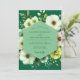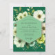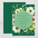 This elegant design features a vibrant arrangement of ivory white anemones against a deep emerald green backdrop. Painterly blossoms with dark centers are complemented by soft green foliage and delicate sprigs, creating a lush and sophisticated botanical atmosphere. Perfect for a refined and modern union.