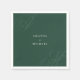 Dieses einfache, moderne minimalistische Design mit elegantem Rand besticht durch sein einzigartiges Hochzeitsnapkin-Design mit schönen kalligraphischen Schriftzeichen der Braut und des Bräutigams an alternativen Ecken. Die Namen der Braut und des Bräutigams sind mit einem sauberen klassischen Look auf einem smaragdgrünen Hintergrund mit Elfenbeintext zentriert. Ersetzen Sie den Beispieltext durch Ihre Informationen. Sie können Ihre Initialen leicht verlassen oder rechts verschieben, nach oben oder unten, um ihre beste Anzeige in diesem Design-Format anzupassen. Die Monogramme sehen am besten aus, wenn sie leicht von den Kanten ablaufen. Wenn Sie das Design in der Textvorlage personalisieren, können Sie den gesamten Editor öffnen, indem Sie am unteren Rand der Textvorlage "Bearbeiten mit dem Entwurfstool" auswählen.