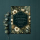 A deeply romantic and moody design unfolds with lush, dark emerald greenery and cream-toned blooms. This elegant composition evokes a sense of refined opulence, perfect for a sophisticated affair. The floral arrangement features soft, delicate petals interspersed with textural foliage.