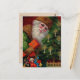 Der Weihnachtsmann ist mit einer Tüte Spielzeug und viel Weihnachtsjubeln beladen. Ein angrenzender Baum ist mit glänzenden Perlen und glühenden Kerzen bewachsen. Der Weihnachtsmann wünscht allen frohe Weihnachten in goldener Schrift. Die lebhaften Farben und das aufwändige Detail dieser Viktorianischen Postkarte sind ein perfektes Bild für Ihre Urlaubskorrespondenz und dekorative Gegenstände.