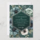 Embrace a sense of sophisticated romance with this stunningly artistic floral arrangement. A deep emerald green background provides a dramatic canvas for lush blooms in shades of moody teal, dusty blue, and soft sage. Painterly anemones, delicate roses, and ivory blossoms intertwine with verdant foliage, creating an elegant composition.