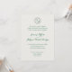 This elegant wedding invitation features a delicate circle of leaves and vines framing your initials at the top, paired with classic serif fonts and romantic emerald script on a soft ivory background for a timeless, refined look.