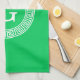 Emerald Wht Greek Key Rnd Frame Initial Monogram Geschirrtuch