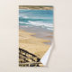 La photo est une promenade en bois menant à un front de plage vierge et propre.
