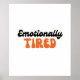 Ein kühnes und illustratives Design mit dem Ausdruck "Emotionally Tired". Das Wort "Emotionally" ist in einer groovigen, schriftartigen schwarzen Schrift mit weißem Umriss, während "TIRED" in einer großen, klotzigen, orangen Blasen-/Psychedelic-Schriftart ist. Dieses Design hat eine lustige, retro, 70er-Jahre-Vibes, die die schwere Stimmung mit einer spielerischen Ästhetik kontrastiert. Perfekt für Bekleidung, Aufkleber, Tassen oder Print-on-Demand-Produkte für jeden, der sich überfordert fühlt oder einen Zustand geistiger Erschöpfung auf stilvolle Weise ausdrückt.