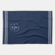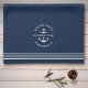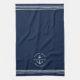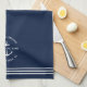 Wasserkocher-Handtuch in marineblau mit "welcome on board" sowie Ihr eigener Bootsname und Ihre Lage in einem Ankerdesign.