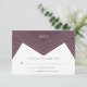 Diese RSVP-Karte im modernen Deko-Stil wurde speziell für die Abstimmung mit unserer Empire Hochzeitseinladungskollektion in Eggplant konzipiert. Sie zeichnet sich durch knallige geometrische Elemente in lila und weißer Pflaume aus. Passen Sie Ihren UAWG an und nehmen Sie den Text an und nehmen Sie ihn an.