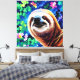 Sloth - 40x40 Canvas Print est un dessin d'art colossal du visage d'un paresseux entouré de fleurs. Cette image a été produite par FancifulFusion — une filiale d'ArtistsQuest — en utilisant divers styles et influences artistiques, puis finalisée par ArtistsQuest.