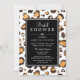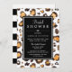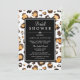 Invitation à la douche nuptiale chic avec un motif empreinte de léopard peint à la main dans des aquarelles, rayures noir et blanc, et polices élégantes.