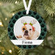 Retrouvez sur votre sapin de Noël les membres de votre famille en peluche ! Ce design ornemental à motif empreinte de patte festif présente un design monogramme moderne qui peut être personnalisé avec votre nom de chien (ou chat) et leur photo. Chasseur vert et blanc avec empreintes de pattes noirs. Conseil photo : recadrez votre photo au format carré avant de la télécharger sur le site.