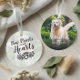Chérissez les merveilleux souvenirs pour toujours avec notre personnage souvenir de coeur de Noël de coeur de coeur de Noël. Notre design comprend un espace réservé photo complet à l'avant et à l'arrière pour afficher la photo de votre animal de compagnie spécial. Personnaliser avec le nom de l'animal, l'année de naissance et l'année passée avec un joli petit coeur en forme d'empreinte de patte design. L'envers comprend la photo répétée ainsi que le message "Empreintes de pattes sur nos coeurs conçus dans une belle typographie script et placés sur la photo éclairée avec un design de coeur et de feuillage.
