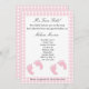 Cette mignonne invitation est parfaite pour arroser la femme ayant des jumelles. C'est arrière - plan, les chèques roses et blancs. Elle montre des empreintes de bébés dessins animés, toutes deux en rose. Vous pouvez customiser tout le texte.