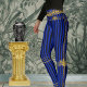Ein luxuriöses Schwarz-Blau mit goldenen Leggings mit einem schwarz-blauen Streifen mit goldenen Ketten an Beinen und Taille.