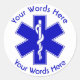 Dieser benutzerdefinierte Aufkleber ist mit einem medizinischen Notabschirm dekoriert, der mit einer Wortwahl über und unter angepasst werden kann, die es Ihnen erlaubt, ihn mit dem Namen einer Person, eines Ortes, einer Position usw. zu personalisieren.