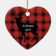 Buffalo Plaid Deer Design Ornament avec du texte personnalisable sur les deux côtés et une couleur arrière - plan personnalisable dans la conception plaid.