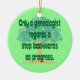 Cet ornement drôle de généalogie comporte la légende "seulement respect de généalogistes un pas en arrière en tant que progrès" sur un arrière - plan vert avec un grand arbre. Cet ornement a l'impression latérale simple, mais est également disponible avec la double impression latérale sur les ornements en céramique. Il est également disponible sur les T-shirts assortis, les boutons, le magnet, les sacs fourre-tout et plus de cadeaux de généalogie d'amusement.