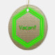 Des hexagones de charpente de fil aux couleurs "néon" indiquent la disponibilité de la pièce sur laquelle il est accroché. Un côté de médaillon a un hexagone vert avec le mot "Vacant" - L'autre côté a un hexagone rouge avec "Occupé". L'Arrière - plan est graphique de lin tan.