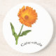 Fleur orange portant le nom "Calendula". Fermeture photographique avec des gouttes de roses sur les pétales.