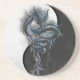 La conception sur ces dessous de verre est un dragon chinois bleu soutenu par un symbole noir et blanc de Yin Yang. Un peu de fumée monte de la base de l'emblème de Yin Yang. Cette créature céleste, le dragon chinois est forte, aventureuse et sortante. C'est énergie est typiquement yang.