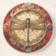 Dessous de verre de libellules rouge et or