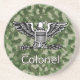 Ce Dessous de verre est décoré avec le collet du colonel de l'Armée et le mot "colonel" sur un arrière - plan camoflage. Une excellente idée cadeau.