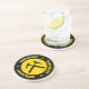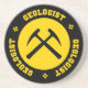 Géologue - dessous de verre en grès jaune et noir avec lettrage de style collégial et marteaux de roche croisés graphique.
