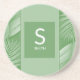 Idéal pour un mariage extérieur ou un événement spécial. Ce monogramme tropical à thème mariage couple offre un attrait amusant, mais classique. Les tons verts sont ornés de feuilles tropicaux. Utilisez pour compléter les thèmes tropicaux mariages et les événements spéciaux. L'avant du dessous de verre mariage a le monogramme et le nom du couple. Utilisez le modèle pour personnaliser.