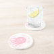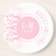 Un élégant tourbillon vintage rose sur un arrière - plan blanc et texte personnalisable pour un dessous de verre mariage.