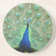 Proud paon montre ses plumes de queue avec les "yeux" bleus et verts. Ses brillantes plumes bleues sur la tête, le cou et la poitrine sont un contraste frappant avec les teintes vertes dans les plumes de queue.