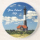 Dessous de verre avec une image du phare de Fire Island par jour ensoleillé. Le phare de Fire Island est situé à l'extrémité ouest de cette île barrière, au large de la rive sud de Long Island.
