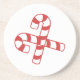 Deux Sucres de canne, à rayures rouges et blanches, se croisent au centre du dessous de verre. ***Partie d'un ensemble coordonné - BKM1a.