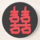 Le symbole Double Bonheur sur ce dessous de verre est un symbole chinois habituellement utilisé dans feng shui pour aider avec l'amour et d'autres choses