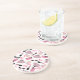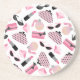 Des dessous de verre comportant une conception se composant rétros des lunettes de soleil roses et noires de plot réflectorisé, changement rose pincent avec le pois gris, embrayage rose pincent avec l'arc noir, les rouges à lèvres roses, les pierres gemmes roses, et la bouteille de parfum avec l'atomiseur rose.