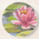 Lys rose élégant et coloré sur des lilypads vert vif avec des touches d'eaux bleues autour de dessous de verre de grès, parfait pour ajouter une touche de couleur tout en protégeant vos surfaces de bois.